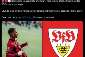体育资讯8月30日讯 据知名转会专家罗马诺报道,斯图加特将签下尼斯20岁前锋布阿纳尼,Here we go!
