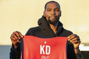米兰阿玛尼在社媒晒出杜兰特手持球衣的照片,并配文:“红色真适合你,KD 。感谢你的到访。”