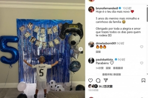 体育资讯9月7日讯 日前,B费在社媒晒照发文,庆祝自己儿子五岁生日。照片中B费的儿子身穿贝林厄姆球衣,并模仿其庆祝。