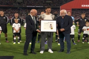 德国队赛前为胡梅尔斯办致敬仪式:外脚背先生,感谢你的一切