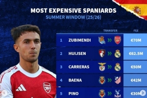 体育资讯9月8日讯 今夏主流联赛转会窗已经关闭,《转会市场》也列出了西班牙球员的今夏转会费最贵情况。