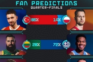 欧锦赛官方发布1/4决赛球迷预测结果,具体如下: