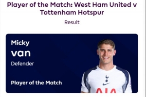 体育资讯9月14日讯 英超第4轮,热刺客场3-0击败西汉姆。据英超官方消息,热刺后卫范德文被评为此役全场最佳,共获56%的投票。