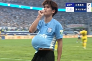 体育资讯9月15日讯 大连英博本轮2-1击败深圳新鹏城,刘祝润进球后做出将球放进怀里以及吸手指的庆祝动作,他赛后表示自己老婆怀孕了。