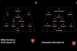 体育资讯09月19日讯 The Athletic撰文列出了阿森纳的两套首发,展示了球队的阵容深度,全队总身价13.3亿欧。此外,TA还预测了一下本周末阿森纳出战曼城时,首发11人可能的布阵。