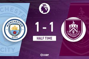 半场-曼城暂1-1伯恩利 艾斯特福自摆乌龙 杰顿-安东尼扳平