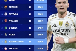 体育资讯10月1日讯 德转更新世界U18球员身价榜,亚马尔2亿欧高居榜首。