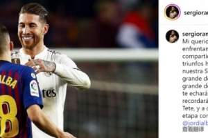 体育资讯10月8日讯 西班牙边卫阿尔巴将在本赛季结束后退役,拉莫斯社媒发文致敬。