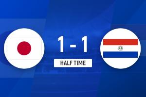 半场战罢,日本队暂1-1巴拉圭队。